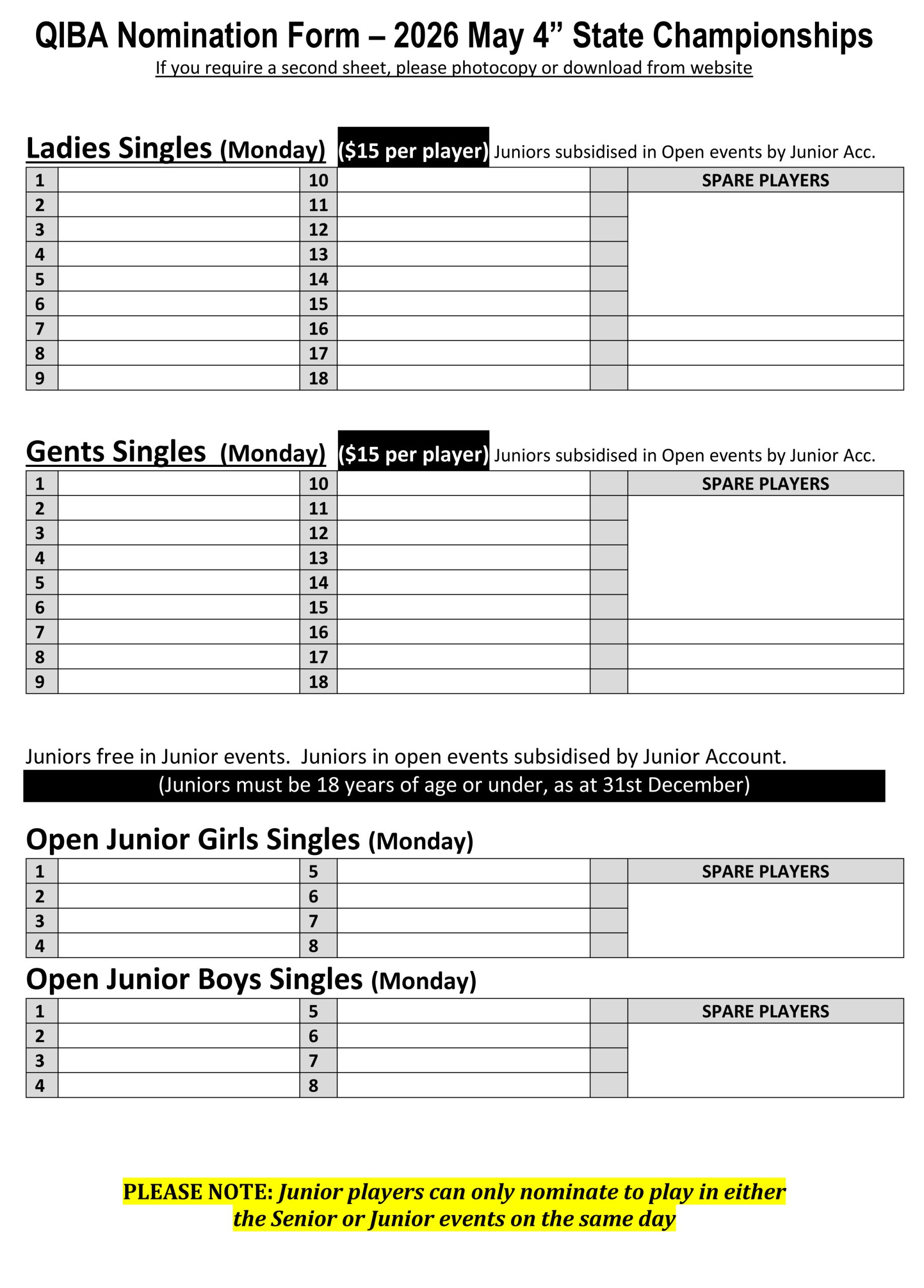 No nomination fee for Juniors